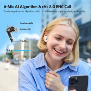 • Support for LDAC, LE Audio, and LC3 codecs ensures compatibility with high-fidelity sources. AI Algorithm and 6 Mics ENC. Enhanced by 6 built-in microphones, advanced AI algorithms, and Qualcomm cVc 8.0 tech, the wireless earbuds with active noise cancellation effectively eliminate background noise to improve vocal clarity during calls. Enjoy crystal -clear calls regardless of your surroundings.