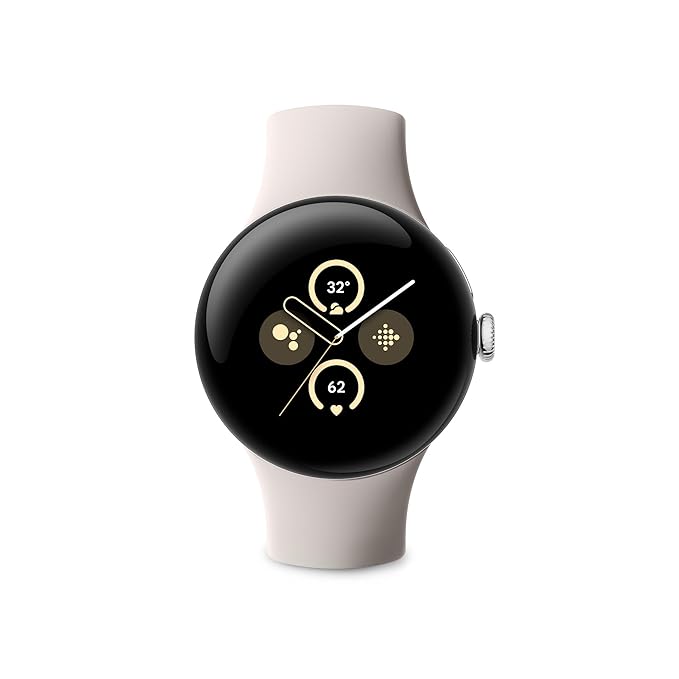 Google Pixel Watch 2 with the best of Fitbit Heart rate tracking, stress management, safety features – Android smartwatch – Polished Silver Aluminium Case – Porcelain Active Band – Wi-Fi