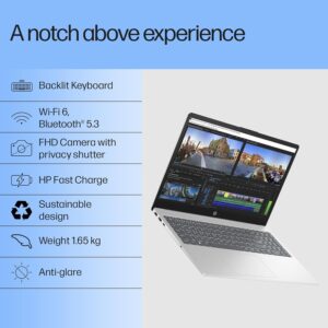 • Display & Graphics: 39.6 cm (15.6″) diagonal, FHD (1920 x 1080), IPS, micro-edge, anti-glare, 300 nits, 62.5% sRGB| Graphics:Intel Arc Graphics
