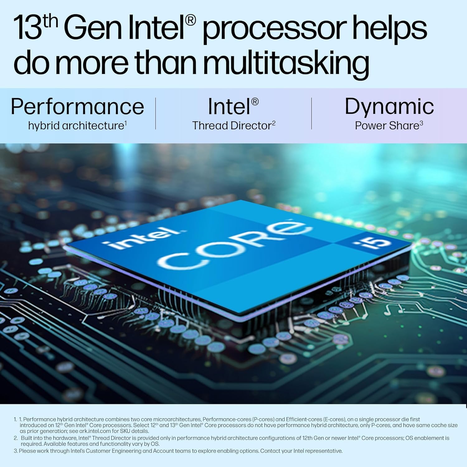 • Processor – Intel Core i5-1335U (up to 4.6 GHz with Intel Turbo Boost Technology(2g), 12 MB L3 cache, 10 cores, 12 threads) ; Memory – 16 GB DDR4-3200 MHz RAM (onboard) ; Storage – 512 GB PCIe NVMe M.2 SSD