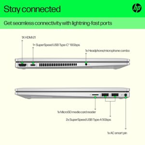 • Other Features: HP True Vision 5MP camera with camera shutter,|Networking: Realtek Wi-Fi 6 (2×2) and Bluetooth 5.3 wireless card (supporting gigabit data rate)|Keyboard & Pointing Device:Full-size, backlit, natural silver keyboard |Battery: 3-cell, 43 Wh Li-ion polymer