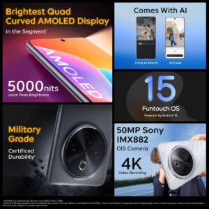 • Latest Software Experience: Runs on Funtouch OS 15, based on Android 15, offering a seamless experience with 2 years of Android updates, 3 years of security patches, *T&C apply
