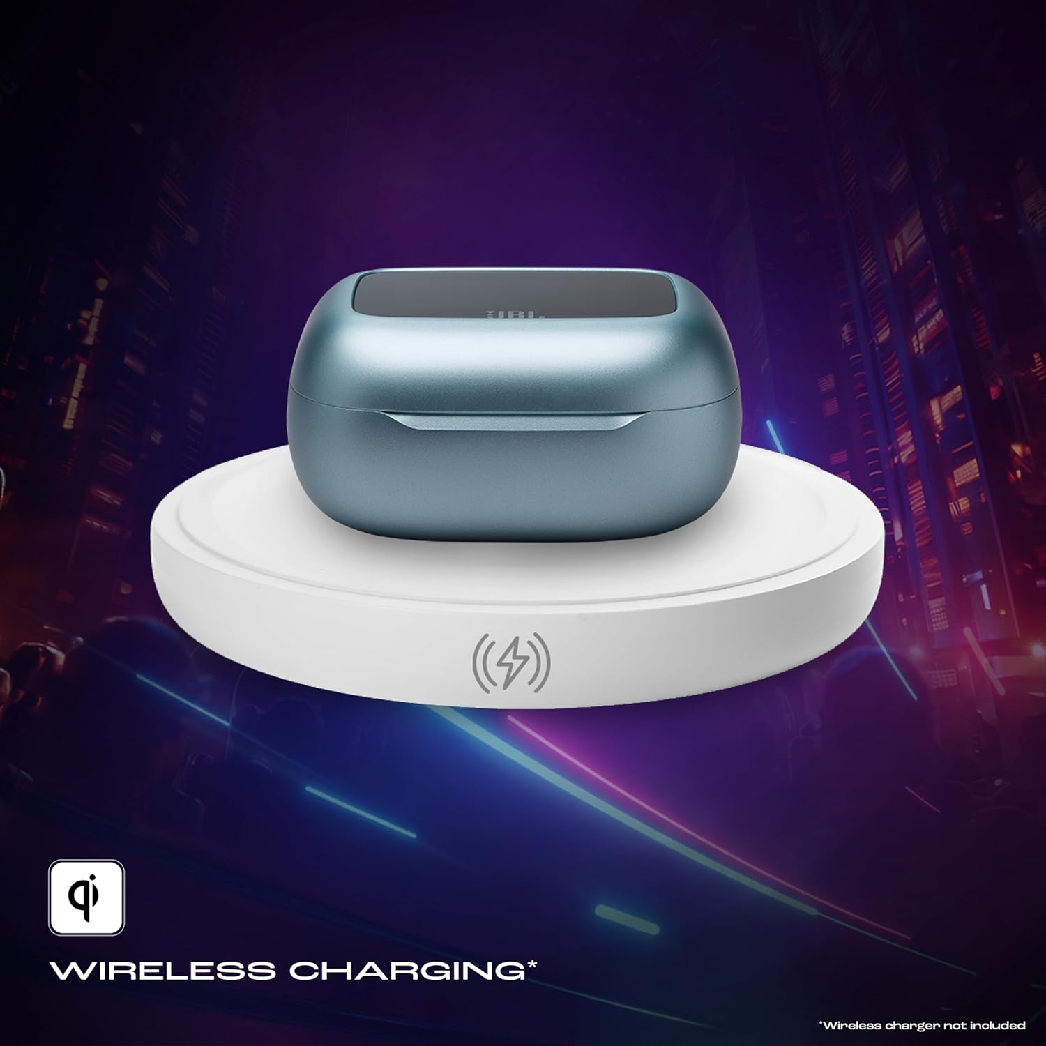 • JBL Live Beam 3 TWS earbuds with Hi-Res audio, True ANC, 48H playtime, smart case with touch display, 6 mics, multipoint connection & wireless charging. Blue.