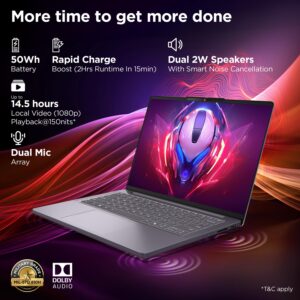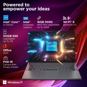 • Memory and Storage: 8GB Soldered DDR5-4800 + 8GB SO-DIMM DDR5-4800, Max Memory Up to 24GB (8GB soldered + 16GB SO-DIMM) DDR5-4800 offering | 512GB SSD M.2 2242 PCIe 4.0×4 NVMe (Expandable upto 1TB)
