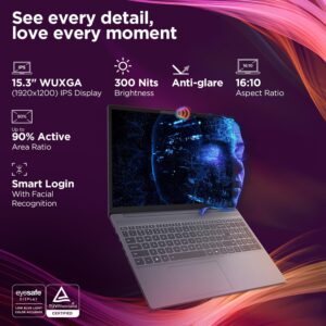 • Display: 15.3″ WUXGA IPS (1920×1200) | 300Nits Brightness | Anti Glare |TUV Low Blue Light Certified