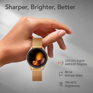 • Stay on top of wellness with SpO2, 24×7 heart rate, REM sleep, stress, hydration alerts, women’s health, breathing rate & guided breathing. Smart watches for women & men.