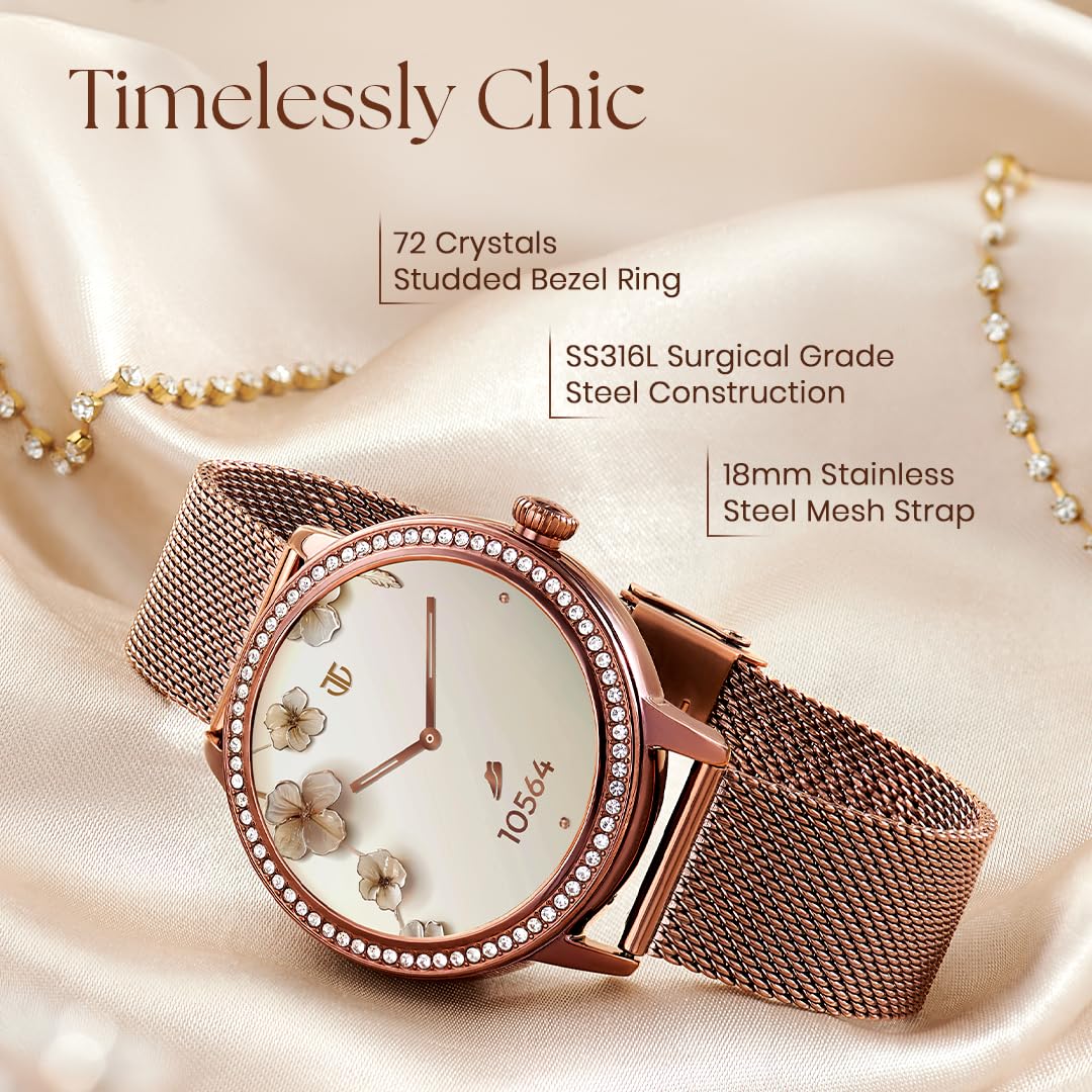 • Where Elegance Meets Efficiency: Designed to dazzle with a studded dial, Valerie blends timeless style with smart tech—perfect for women who won’t compromise on fashion or function. Crafted with 316L Stainless Steel and bejewelled bezel for a truly premium feel.